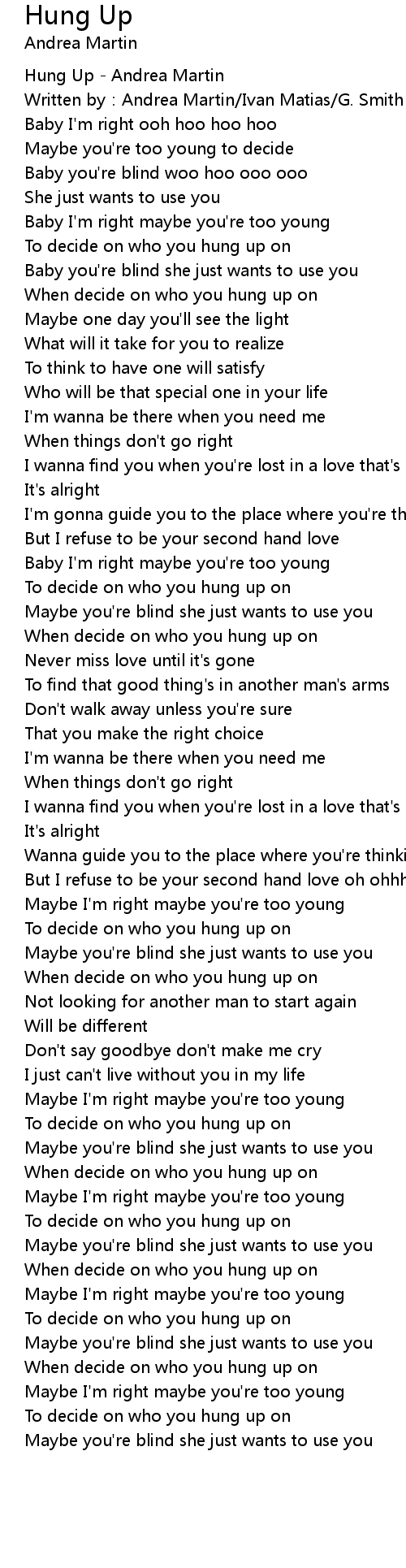 | [00:00.100] | Hung Up Andrea Martin |