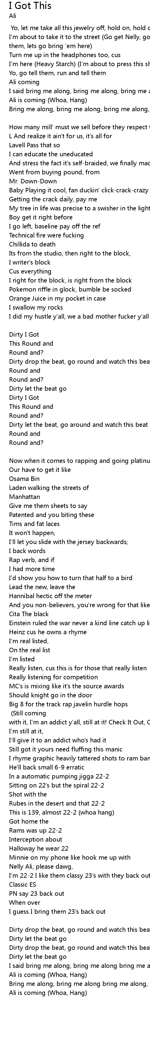 Ali is coming (Whoa, Hang) [Verse 1] |