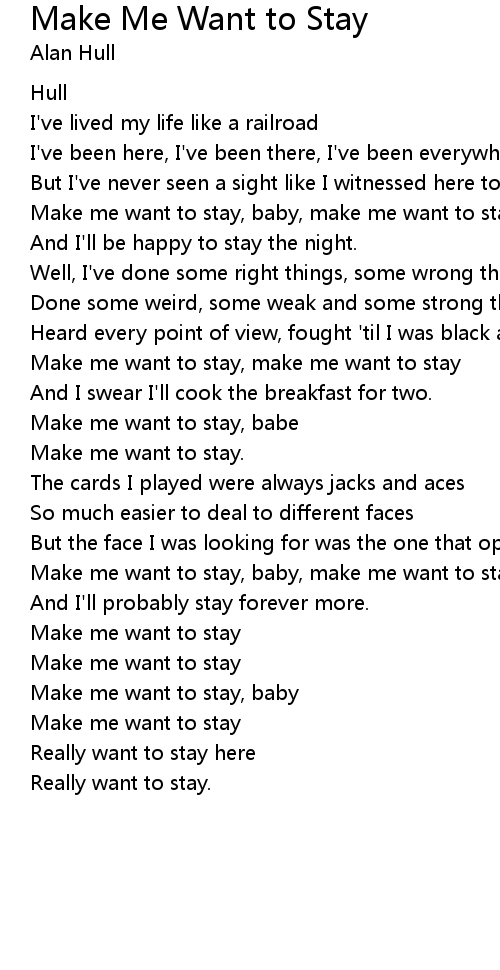 | Make me want to stay, baby, make me want to stay | |