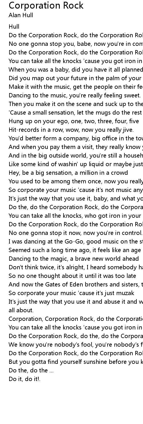 | Do the, do the Corporation Rock, do the Corporation Roll | |