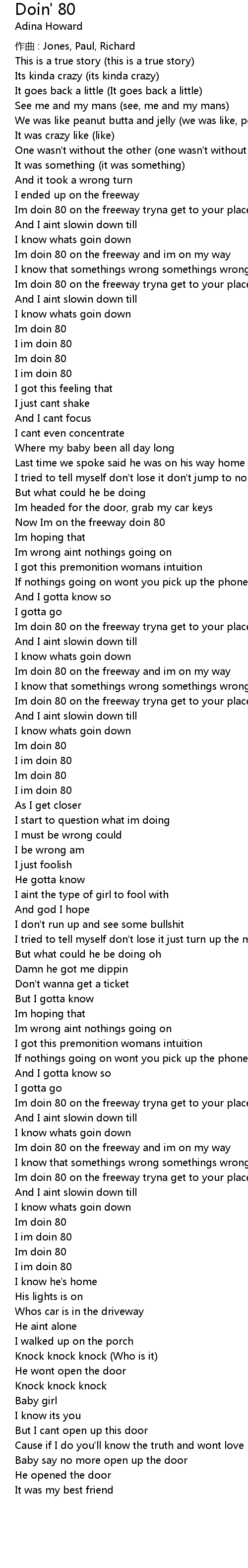 | Now Im on the freeway doin 80 | |