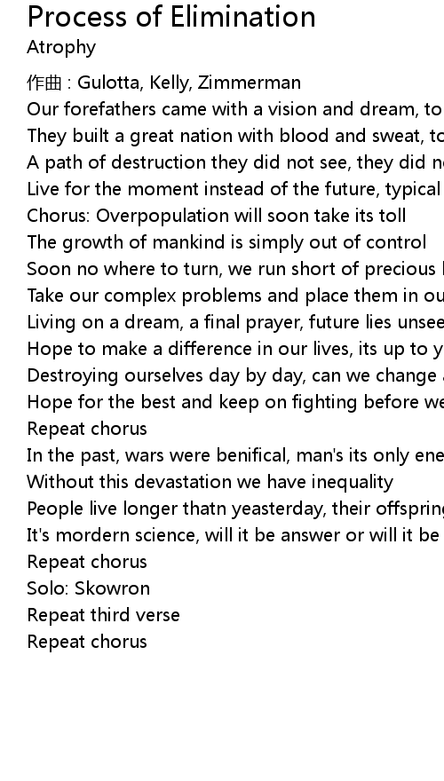 | Song | Process of Elimination |