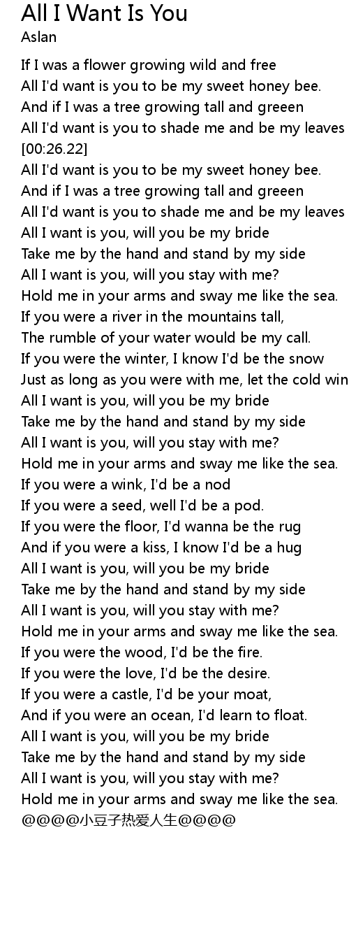 | [00:38.52] | All I want is you, will you be my bride |