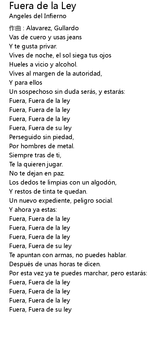 | Song | Fuera de la Ley |