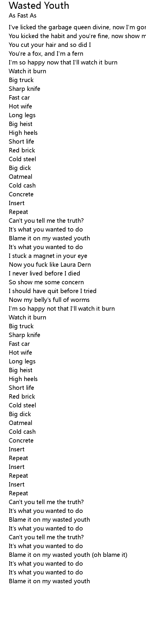 Blame it on my wasted youth |