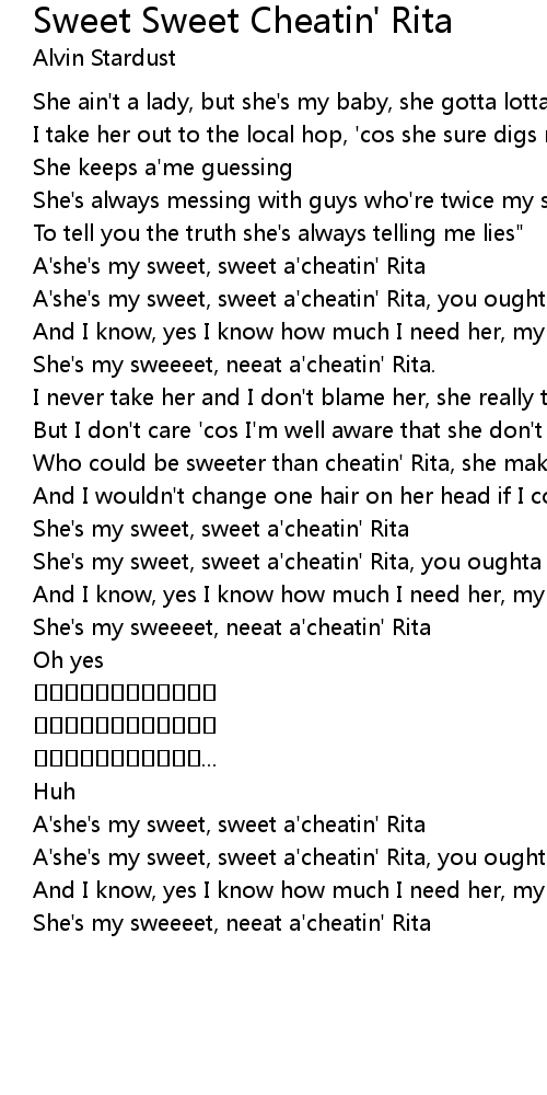 | A' she' s my sweet, sweet a' cheatin' Rita | |
