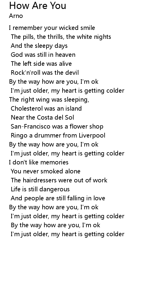 | By the way how are you, I'm ok | |