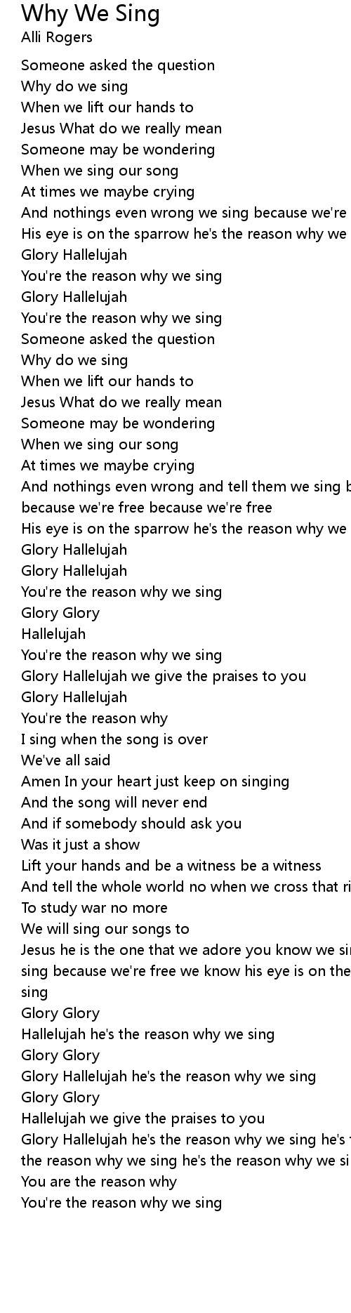 Glory Hallelujah he's the reason why we sing he's the reason why we sing he's the reason why we sing he's the reason why we sing he is the reason |