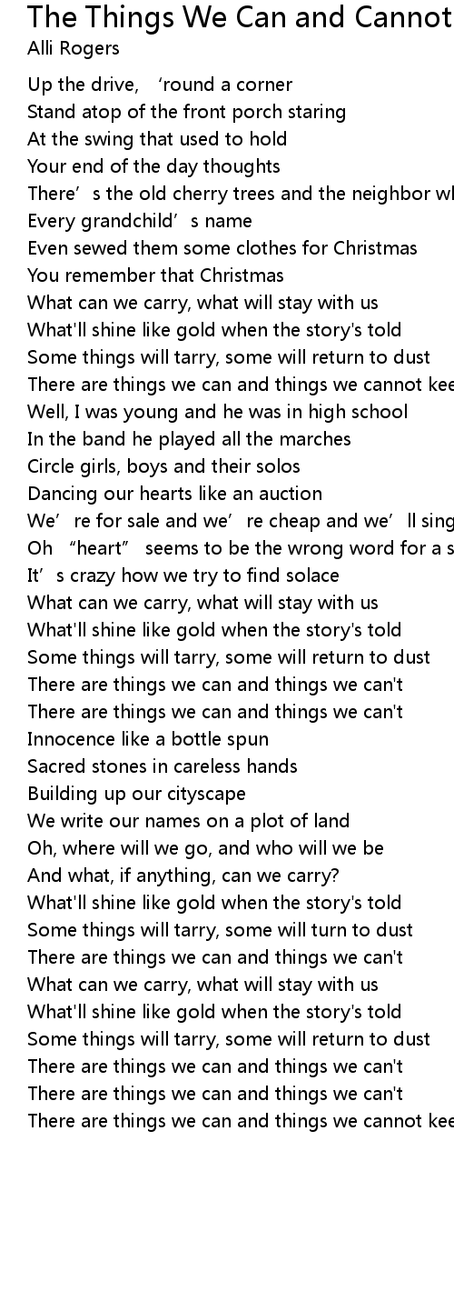 | Song | The Things We Can and Cannot Keep |