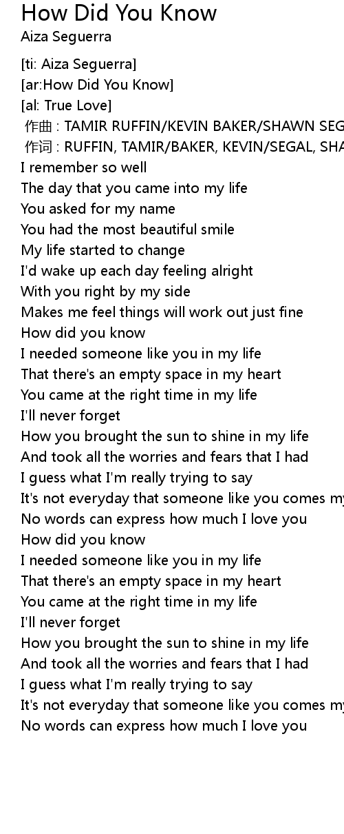 | [01:08.22] | How did you know |