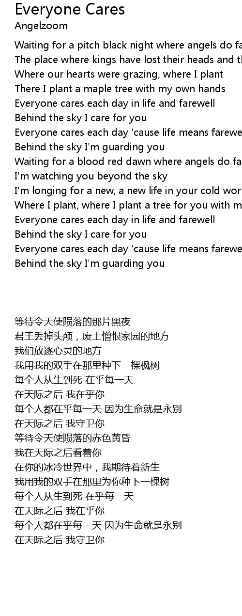 Everyone cares each day 'cause life means farewell |