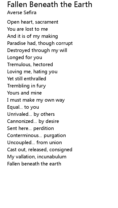 | Song | Fallen Beneath the Earth |