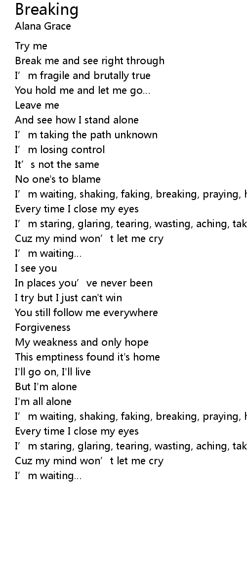 | I' m waiting, shaking, faking, breaking, praying, hating | |