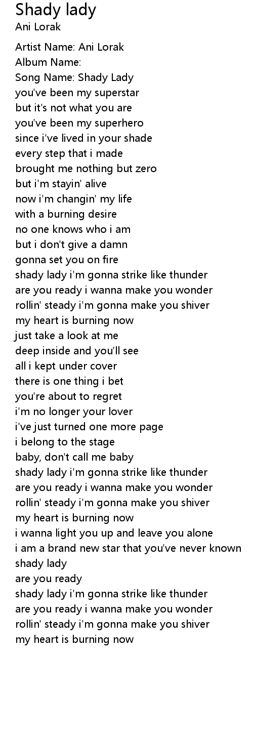 | Song Name: Shady Lady | |