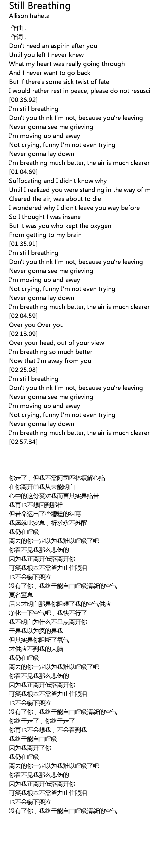 | [01:36.31] | I' m still breathing |