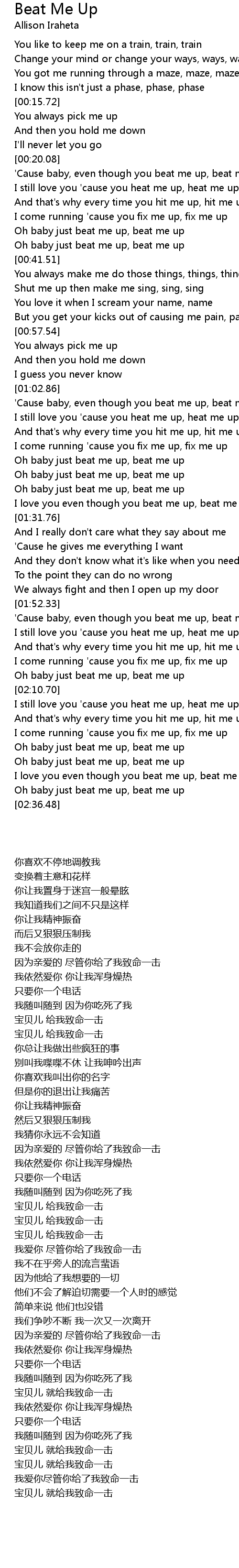 I love you even though you beat me up, beat me up |