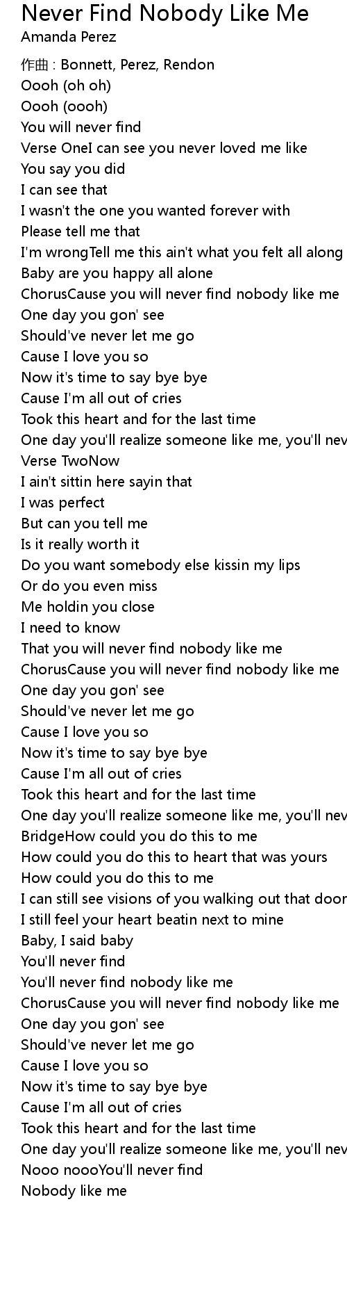 | ChorusCause you will never find nobody like me | |