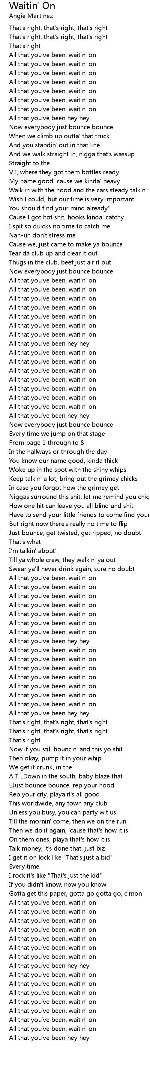 All that you've been, waitin' on |