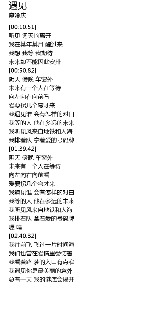 | [03:03.01] | 我遇见你是最美丽的意外 |