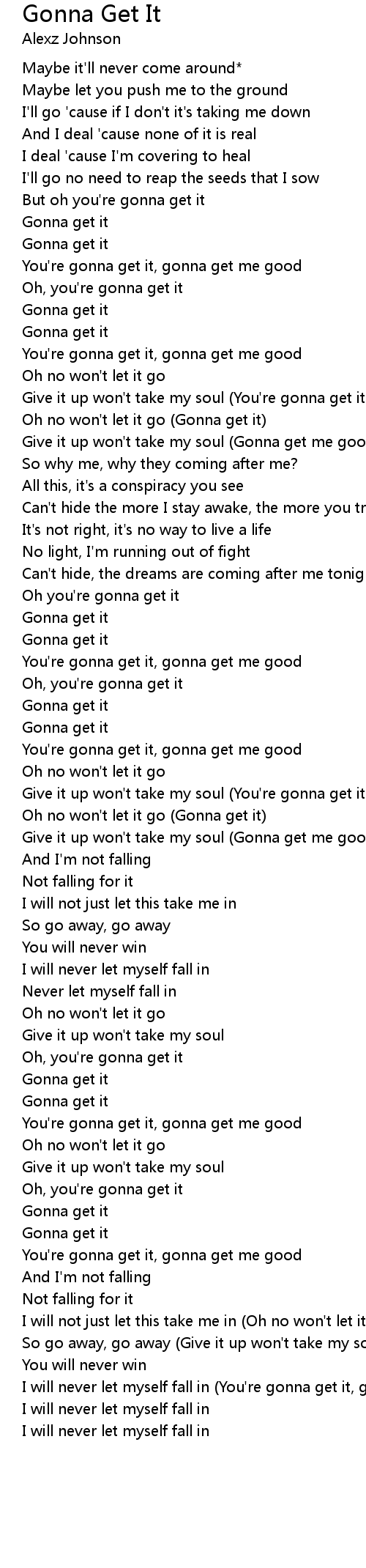 You're gonna get it, gonna get me good |