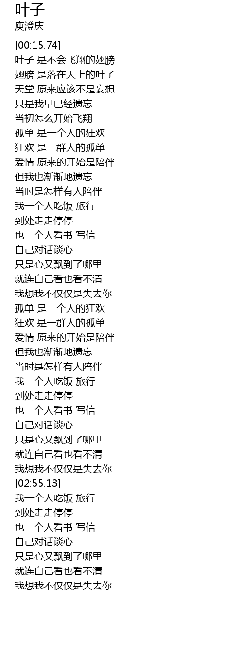 | [00:34.00] | 翅膀 是落在天上的叶子 |