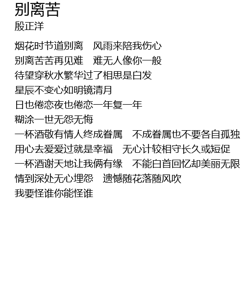 | bié lí kǔ kǔ zài jiàn nán nán wú rén xiàng nǐ yì bān | |