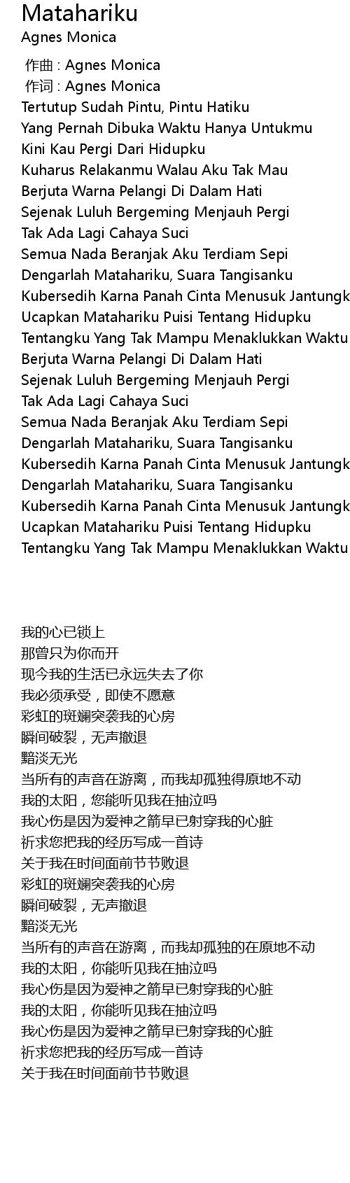 | [00:00.00] | 作曲 : Agnes Monica |