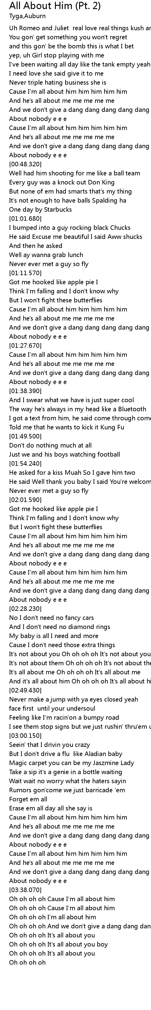 | [03:39.120] | Oh oh oh oh Cause I'm all about him |