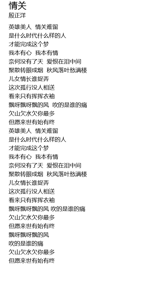 | [00:47.579] | 奈何没有了天 爱恨在泪中间 |