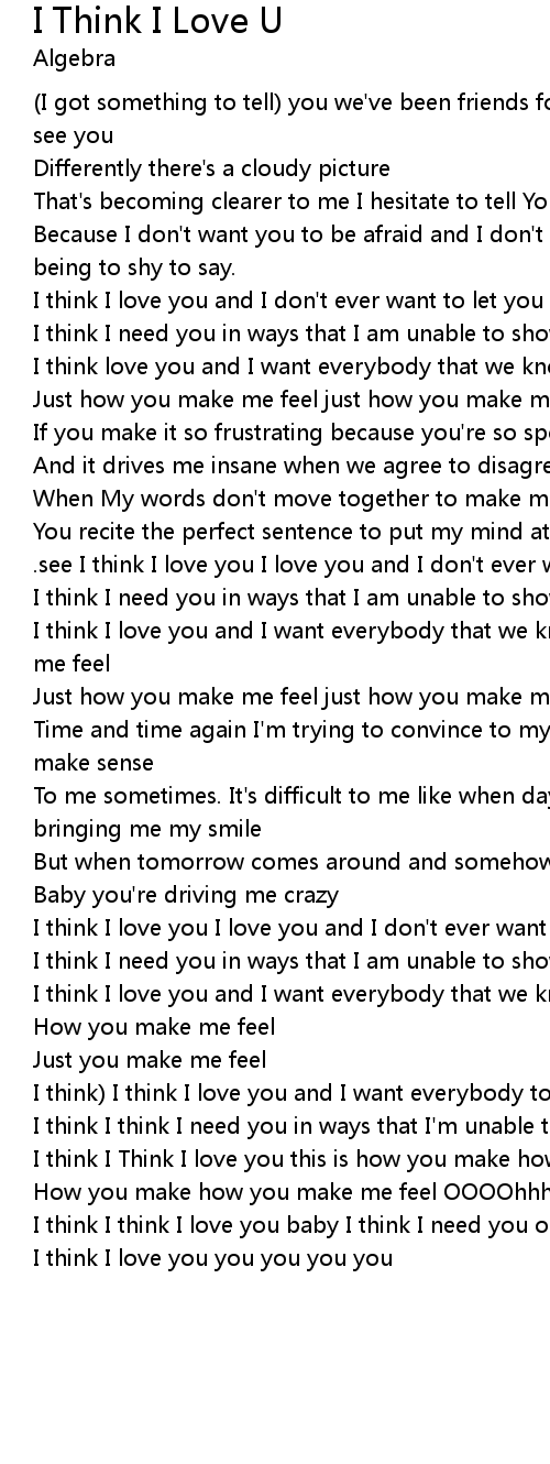 | I think I love you and I want everybody that we know to know just how you make me feel | |