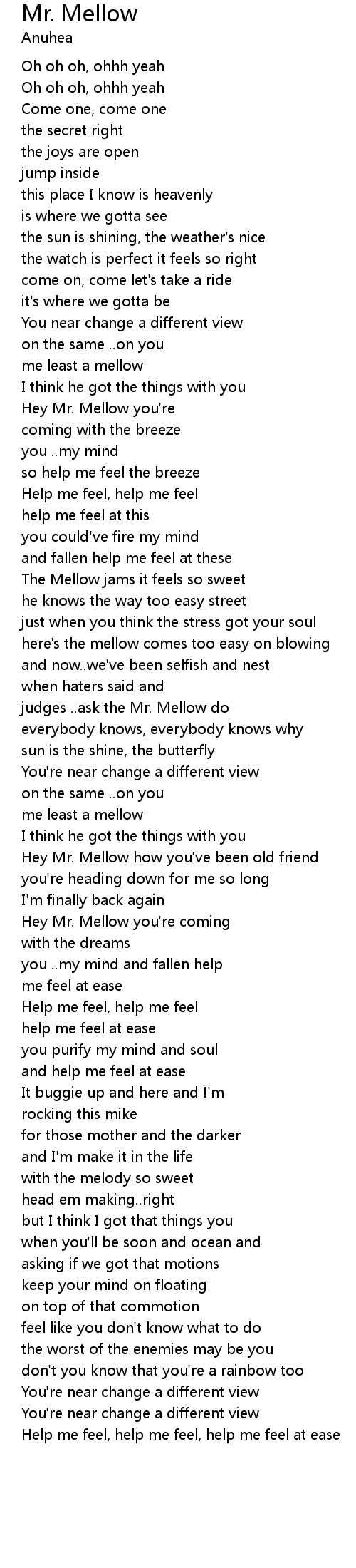 | Hey Mr. Mellow you're | |