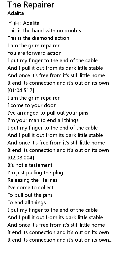 | [01:18.850] | I am the grim repairer |