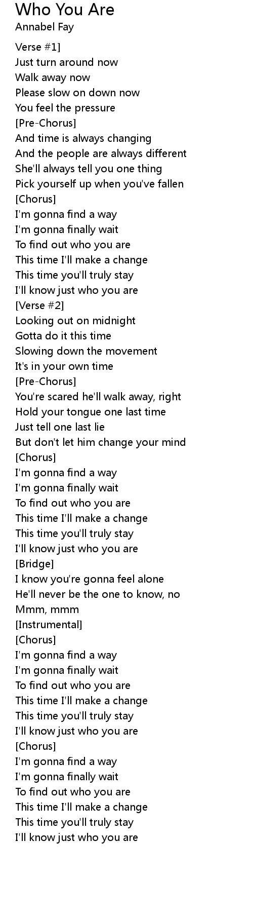 I'll know just who you are |