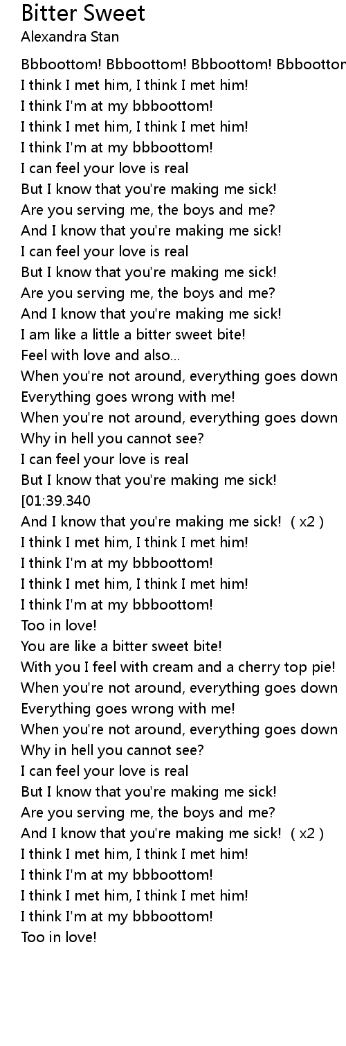| [01:06.650] | I am like a little a bitter sweet bite! |