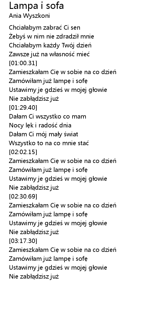 | [02:56.57] | Zamówiłam już lampę i sofę |