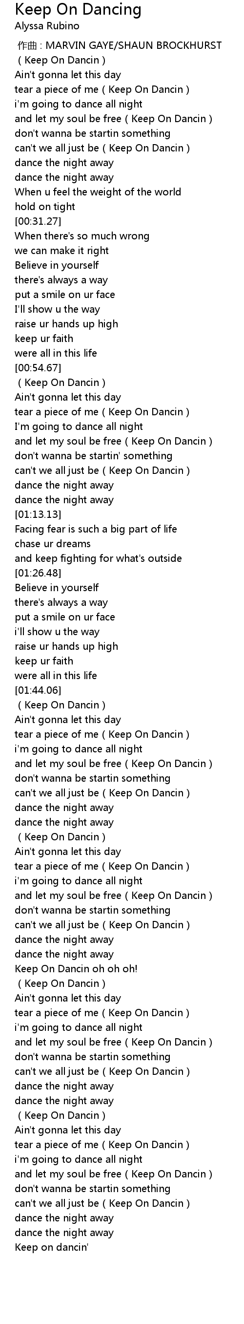 | [02:19.43] | Keep On Dancin oh oh oh! |