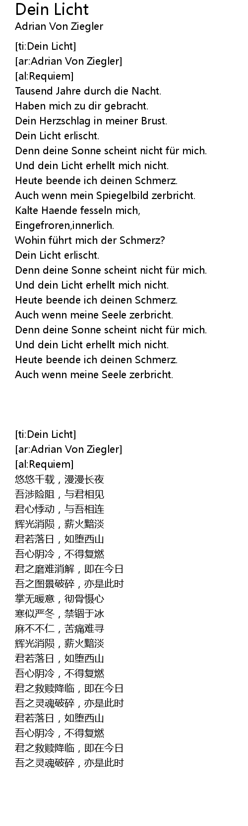 | [02:53.62] | Und dein Licht erhellt mich nicht. |