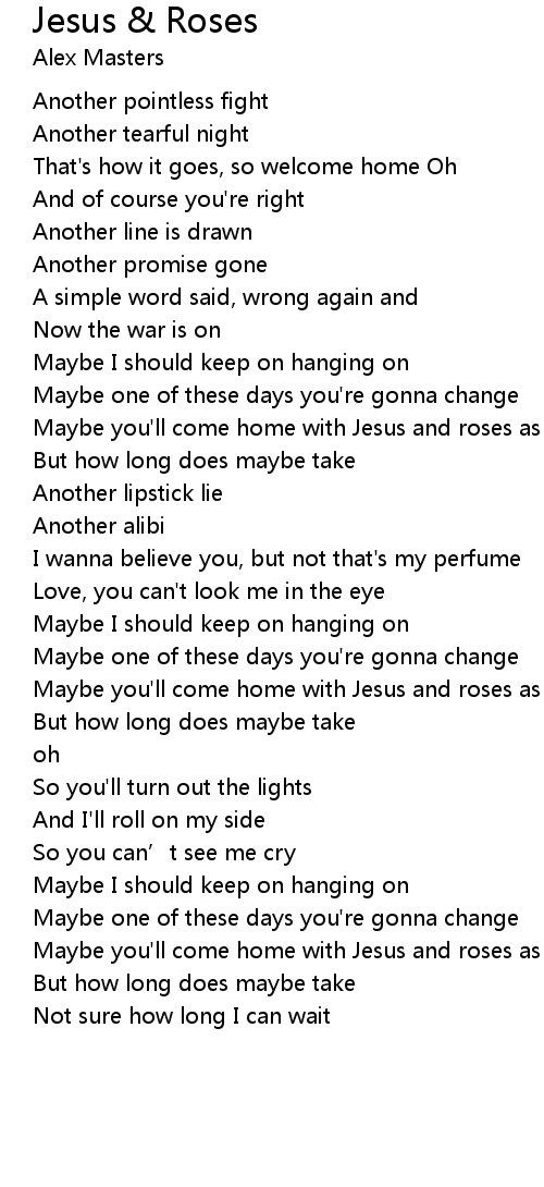 | Maybe you' ll come home with Jesus and roses as a tear rolls down your face | |