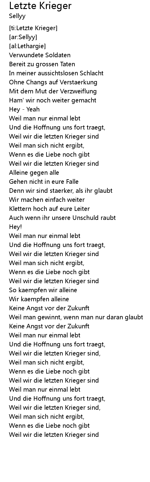 | [00:57.63] | Weil wir die letzten Krieger sind |