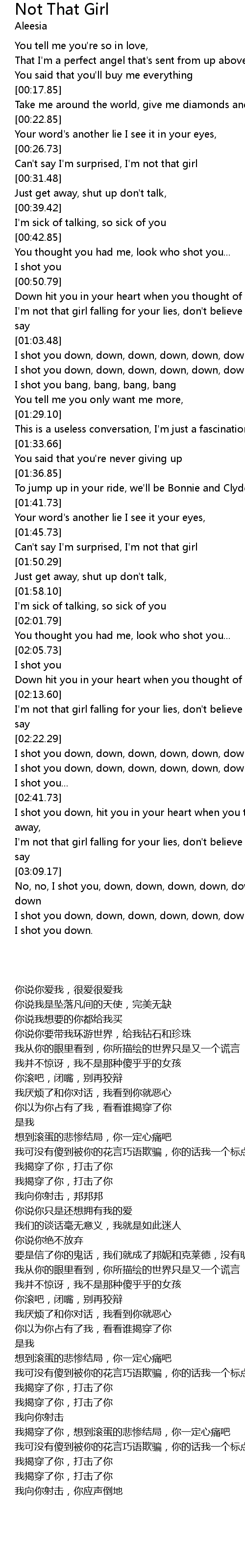 | [03:11.60] | No, no, I shot you, down, down, down, down, down, down, down, down, down |