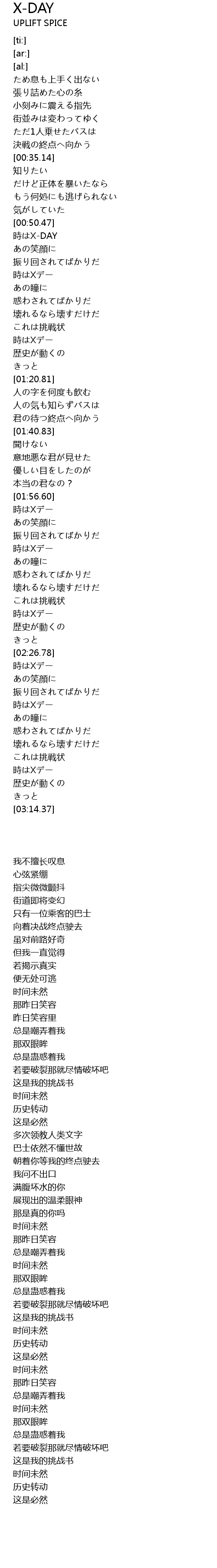 | [00:50.57] | 時はX-DAY |