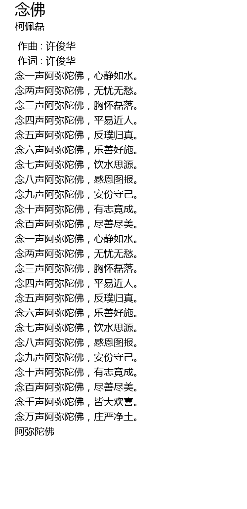| [02:45.981] | niàn sì shēng ē mí tuó fó, píng yì jìn rén. |