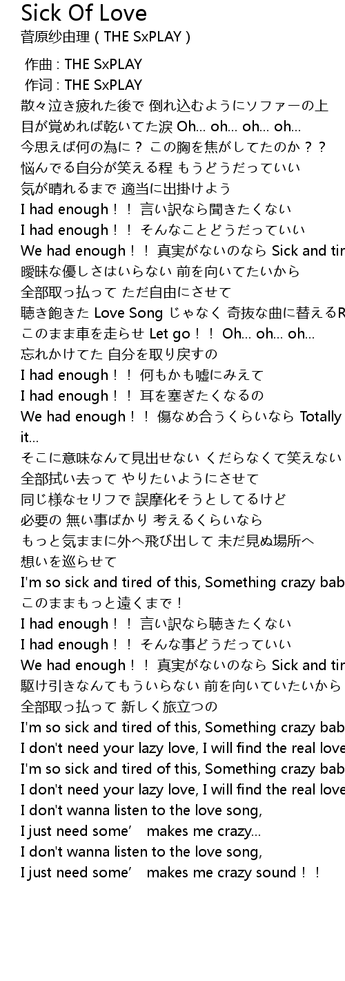 | [00:59.24] | We had enough!! zhen shi Sick and tired of love... |