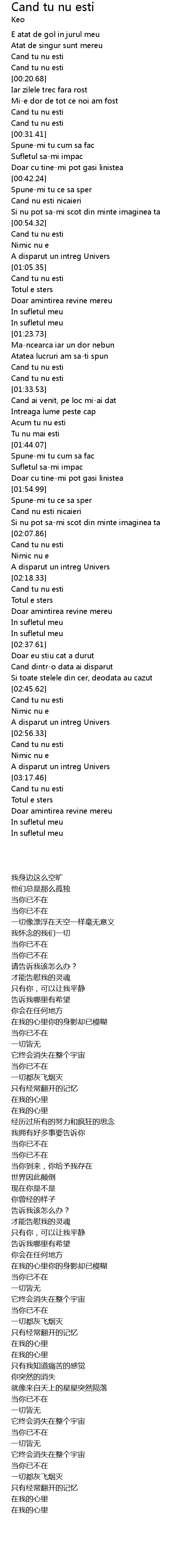 | [03:18.32] | Cand tu nu esti |