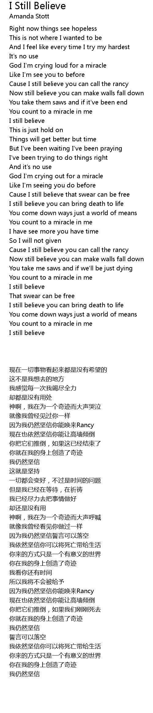 I still believe |