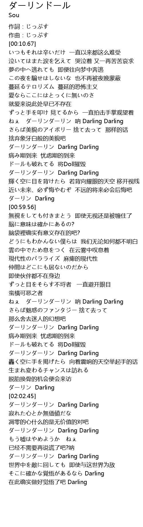 | [02:00.67] | ダーリン Darling |