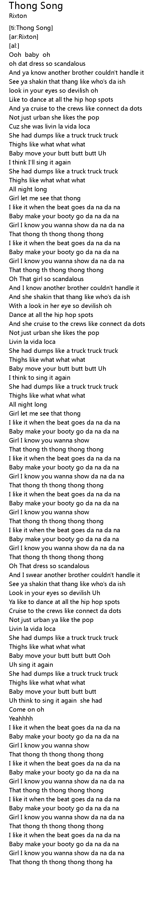 | [02:38.22] | She had dumps like a truck truck truck |