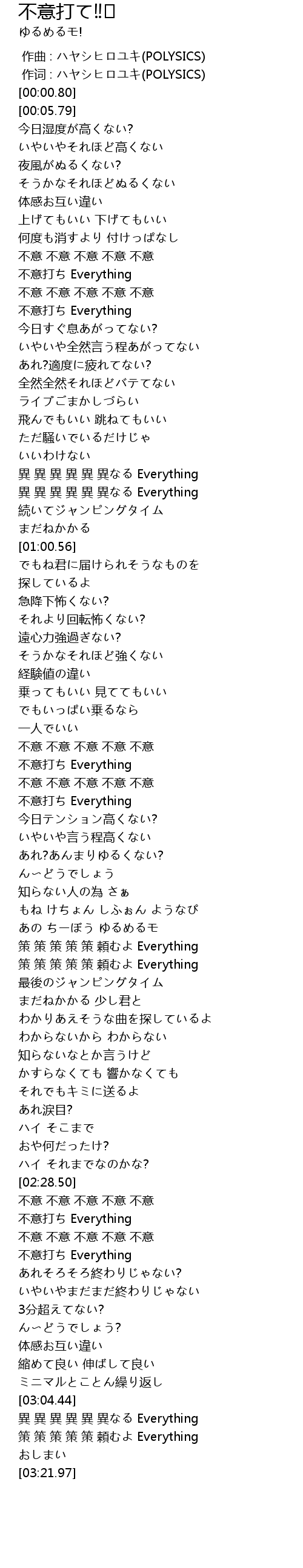 | [02:42.72] | 不意 不意 不意 不意 不意 |