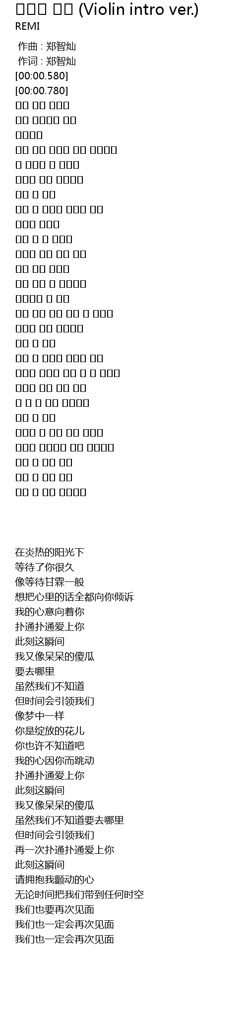 | [00:00.193] | 作词 : 郑智灿 |