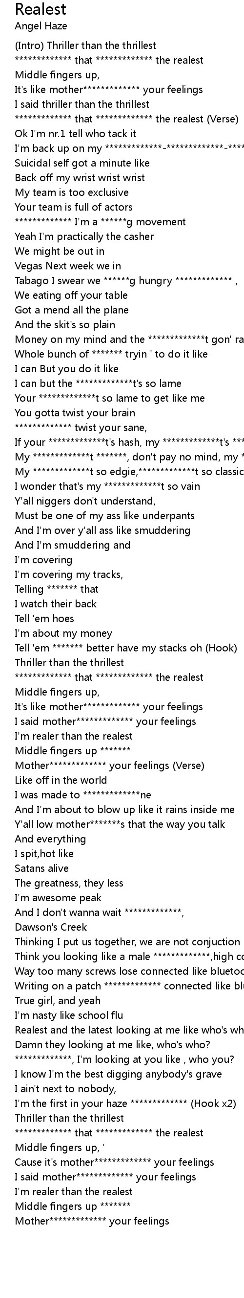 ************* that ************* the realest (Verse) |